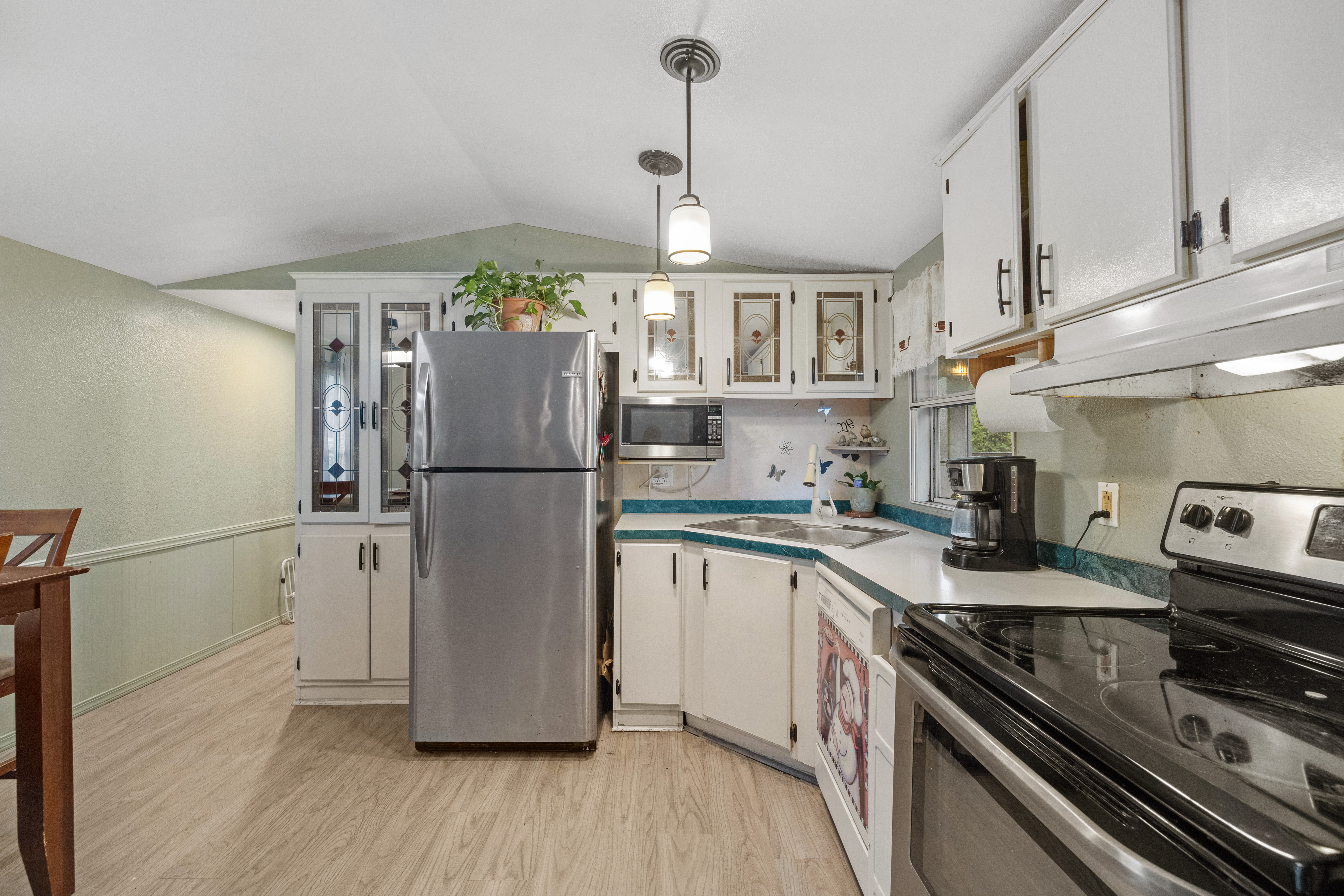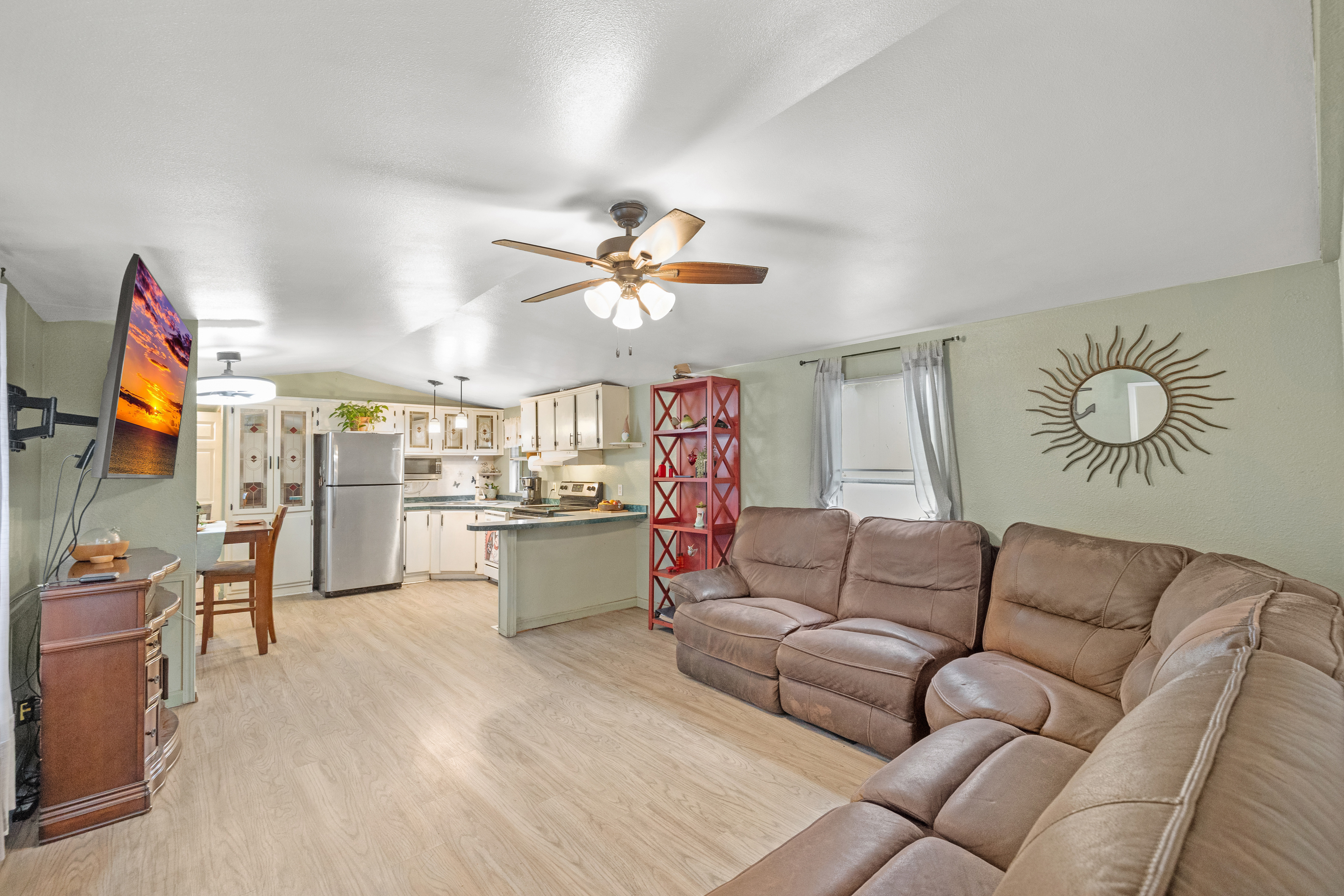 Enjoy comfortable, affordable living in this well-kept 1998 manufactured home featuring a spacious layout and a generous yard in a park with no age restrictions. The home offers two large bedrooms, a bright kitchen with a breakfast bar and dedicated eating space, and great natural flow throughout. A storage shed in the backyard provides extra room for tools, hobbies, or seasonal items. Space rent includes water, sewer, and garbage, adding convenience and value. Park approval required.